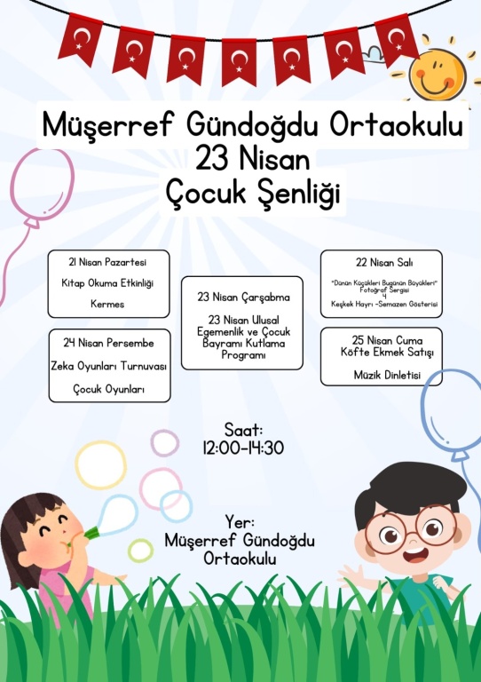 23 Nisan Ulusal Egemenlik ve Çocuk Bayramı okulumuzda hafta boyunca çeşitli etkinliklerce kutlanacak.